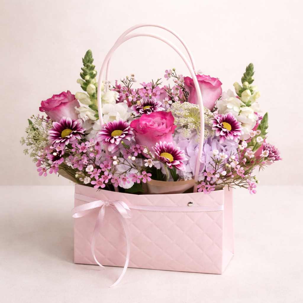 Stunning selection of roses and lilies filled with fresh eucalyptus. Color of flowers may vary depending season.
